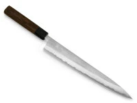 Japanische Kochmesser bestehen aus äußerst harten Stählen und sind dünner geschmiedet und geschliffen als ihre europäischen Pendants. Einige dieser Messer verfügen über sehr fein geschliffene Schneidlagen, wodurch sie empfindlicher sind und sich lediglich für weiches Schnittgut eignen. Bitte beachten Sie diesbezügliche Informationen in den Produktdetails. Insbesondere Messer mit sehr dünner Schneide und Hohlschliff neigen zu Ausbrüchen an der Klinge. Diese sind hervorragend für feine Schnitte von weichem Schnittgut geeignet, sind aber mit entsprechender Vorsicht zu verwenden. Beim Schärfen auf einem Schleifstein entsteht in der Regel ein Winkelschliff, wodurch die Schneide mit der Zeit stabiler wird.