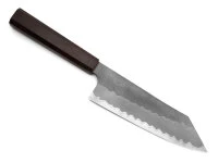 möglich sind. Weitere Bestandteile sind 15% Chrom, 3% Molybdän und 2% Vanadium. Mit diesem Schneidkern bieten die Messer der Serie Zuiun Kiwami eine außergewöhnlich hohe Schärfe, Schneidleistung und Beständigkeit und übertrifft sogar den Premiumstahl VG-10. Umhüllt ist der Schneidkern von 62 Lagen Damaststahl. Zusätzlich sind die Klingen der Zuiun Kiwami Serie mit der sehr kratz- und verschleißfesten Beschichtung DLC ausgestattet, die das wunderschöne schwarze Damast-Muster bei üblichem Gebrauch sicher und dauerhaft schützt. Der Messergriff besteht aus unempfindlichen und pflegleichten Holzlaminat, achteckig, mit dekorativer Metallverzierung. Ganz besondere Aufmerksamkeit hat auch die Form der Messer und der Messerschliff verdient. Alle Zuiun Messer sind leicht konvex geschliffen, was den Klingen Stabilität, Haltbarkeit und ein überaus angenehmes Schneidverhalten gibt. Dieser Schliff leitete die Kanetsugu Cutlery aus den traditionellen japanischen Schwertern ab, die der Schwertschmied Kanetsugu bereits im 14’ten Jahrhundert schmiedete. Bekannt sind die Messermacher aus Seki für die konsequente Verbindung von traditionellen Fertigungsmethoden mit Hightech, sowohl in der Fertigung als auch in der Materialwahl. Diese japanischen Kochmesser sind also wie die berühmten Katana kreiert und bieten, ähnlich wie die Samurai-Schwerter, außergewöhnliche Schärfe und Haltbarkeit. Außerdem sind sie auch dank dieser Schleifform, leicht zu schleifen.