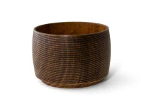 Diese Produktserie umfasst moderne japanische Becher, Schalen und Servier-Tablets die oft im Set als Speiseschalen, als Suppenschalen, Reisschalen, Müslischalen, für kalte und heiße Getränke und natürlich für die berühmte kleinen Leckereien, die zum Tee oder auch Kaltgetränken serviert werden, Verwendung finden. Begeistert schon die optische Ästhetik der wundervollen, handwerklich gefertigten Turari-Produkte, so ist man förmlich hingerissen, wenn man sie in den Händen hält. Das schöne Kirschbaumholz, die perfekt ausgewogene Form und die schmeichelhafte Oberfläche steigern den Genuss von feinen Getränken und Speisen. Der Designer Atsushi Sakai arbeitet seit Jahren mit Gato Mikio zusammen. Denn hier werden die Entwürfe handwerklich perfekt zu echten Produkten, die das Leben bereichern. „Kiji-Rokuro-biki“ nennt sich die traditionelle Bearbeitungstechnik, mit der in Yamanaka bei Gato Mikio Holzgefäße gefertigt werden. Schon beim Sägen wird ein besonderes Verfahren angewendet, das die Produkte resistenter gegen Verformungen macht. Die Kunsthandwerker arbeiten dann in exakt festgelegten Schritten mit speziellen Werkzeugen an der Formgebung.