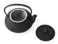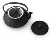 wird der Tee aufgegossen. Meist ist sie innen emailliert, was die Abgabe von Eisen und Mineralien, die im hochwertigen, japanischen Gusseisen vorhanden sind, bremst. Aber auch Emaille ist nicht vollkommen dicht, so dass Tee aus einer hochwertigen Iwachu-Teekanne einen reicheren Geschmack erhalten wird. Minderwertige Kannen sollte der Teekenner aus geschmacklichen und gesundheitlichen Gründen meiden. Achten Sie deshalb darauf, dass die Teekanne mit dem Original-Stempel von Iwachu oder anderen hochwertigen Herstellern ausgestattet ist.