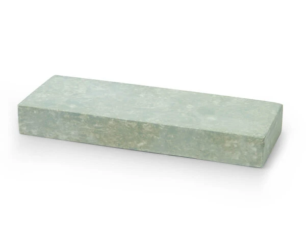Die allermeisten synthetischen Wasserschleifsteine aus Japan werden getrocknet und nicht gebrannt. Deshalb sind sie weicher und geben beim Schleifen relativ viel abrasives Material frei. Prinzipiell ist das sehr gut, hat aber auch einen Nachteil: die Schleifsteine nutzen sich in der Regel schneller ab. Miyagoshi hat sich deshalb für eine andere Fertigungsmethode entschieden, die Vitrified-Methode. Vitrified heißt Verglasung. Die Mischung aus keramischem Bindemittel und den Schleifmitteln wird bei hohem Druck gepresst und bei ca. 1300° Celsius 36 Stunden lang gebrannt. Das Endergebnis ist sehr widerstandsfähig, selbst gegen Lauge und Säure, was in der industriellen Anwendung sehr wichtig ist. Als Schleifmittel werden Aluminiumoxid, Zirkonoxid sowie Siliziumoxid höchster Qualität eingesetzt. Nachdem diese Steine gewässert sind, wird durch den Schleifvorgang eine Oberfläche erzeugt, die ein hervorragendes Schleifergebnis liefert. Das Gefühl beim Schleifen ist etwas anders als bei herkömmlichen, weichen Wassersteinen. Die Messerführung wirkt exakter und leichter. Die Abmessungen der Schleifsteine von Miyagoshi sind mit meist 75 mm Breite und 205 mm Länge sehr gut dimensioniert, so dass auch große Messer komfortabel geschliffen werden können.