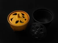 Dies ist die einfachste Art, seine Räume mit aromatischen Düften zu füllen. Füllen Sie etwas Sand – alternativ Granulat oder Asche – in das Gefäß. Räucherkegel und Räucherspiralen legen Sie bitte direkt auf den Sand, zünden diese an und schließen den Deckel. Die Räucherstäbchen arrangieren Sie am besten bei geschlossenem Deckel durch die dafür vorgesehenen Öffnungen.