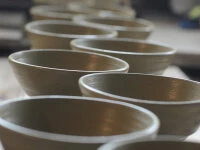Der Brennofen von Minowadagama ist in Ishinomaki-shi, einem Ort im nördlichen Teil der Hauptinsel von Japan gelegen. Die Präfektur heißt Miyagi und grenzt südlich an Iwate. Die Natur ist üppig, aber rau. Früher war diese Gegend als Teil von Hitakami bekannt, einer Gegend, die in vielen historischen Schriften Erwähnung findet. Prägend für die Landschaft ist unter anderem der Fluss Kitakami, der im pazifischen Ozean mündet. Minowadagama stellt Dinge her, die aus dieser Umgebung hervorgehen und für das tägliche Leben gedacht sind. Folgerichtig werden seit Gründung des Ofens konsequent heimische Naturmaterialien wie der lokale Ton, die Steine des heiligen Berges Jobonsan oder auch verschiedene heimische Hölzer eingesetzt. Selbst für die Glasuren werden nur lokale Materialien verwendet. Eiji Kameyama ist Keramikkünstler und Besitzer des Ofens, dessen Tradition über 300 Jahre zurück reicht.