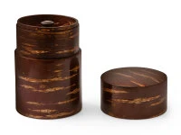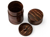 , beides Bezeichnungen für Behälter, die der Aufbewahrung von Tee dienen. Das natürliche Material Kirschbaumrinde hat eine ganz eigene, besondere Ästhetik und bietet sachlich ähnliche Vorteile, wie Holz allgemein. Die Fähigkeit Feuchtigkeit aufzunehmen und den Tee damit zu schützen, ist wohl die wichtigste Funktion dieses reinen Naturmaterials. Weitere Produkte sind zum Beispiel Tablets, Teelöffel, Schmuckschatullen, und vieles mehr. Kirschbaumrinde ist ein sehr umweltfreundliches Material, da es nach der Ernte nachwächst. Die Oberflächen der Produkte werden naturbelassen oder mechanisch bearbeitet, d.h. mit einer speziellen Technik „geschabt“, so dass die Oberfläche glänzt als wäre sie poliert.